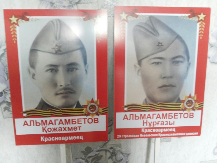 "В этом году с гордостью понесу фотографии своих прадедов по центральной улице нашего города. На Великую Отечественную войну ушли сразу два родных брата - Кожахмет и Нургазы Альмагамбетовы.
