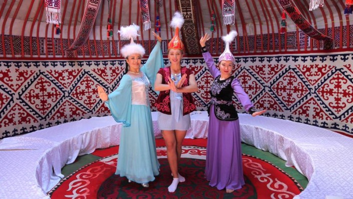 Зрители также увидят "жизнь казахов безо всякого налета современности", попытки ведущего сыграть на домбре, танец "кара жорга" и многое другое.