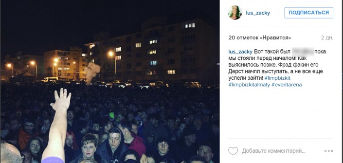 Отметим, о приезде Limp Bizkit стало известно еще в начале 2015 года. Концерт легендарного исполнителя с нетерпением ждали поклонники группы. Фред Дерст обещал в Алматы грандиозное, небывалое шоу. Сообщалось, что группа привезет с собой целый самолет оборудования и техники. А оказалось, что прилетела не вся техника...
