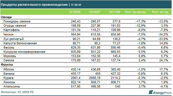В Казахстане в августе снизились цены на сезонные овощи, передает корреспондент Tengrinews.kz со ссылкой на Energyprom.kz.