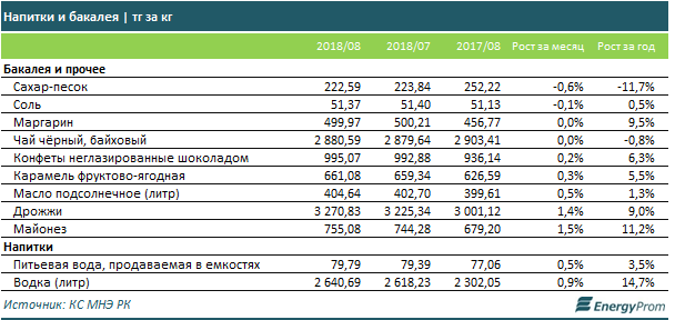 В сегменте бакалеи немного подорожали дрожжи (+1,4 процента к июлю), а также майонез (+1,5 процента). На напитки цены практически не поменялись.