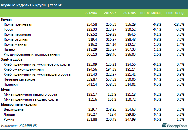 В сегменте мучных изделий и круп практически не наблюдалось скачков цен. Более чем на 1 процент изменилась только стоимость пшена (+1,1 процента за месяц) и риса (+2,6 процента).