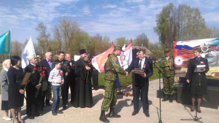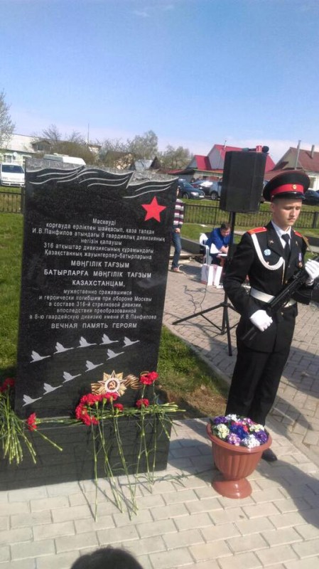 "Памятник воинам-казахстанцам, легендарным гвардейцам-панфиловцам торжественно открыт на центральном воинском захоронении города Волоколамска. Здесь же прошел митинг посвященный памяти бойцов 8-ой гвардейской дивизии им. Панфилова. У подножия памятника бойцы павлодарского поискового отряда заложили символичную капсулу с горстью казахстанской земли", - сообщил Дмитрий Попазов