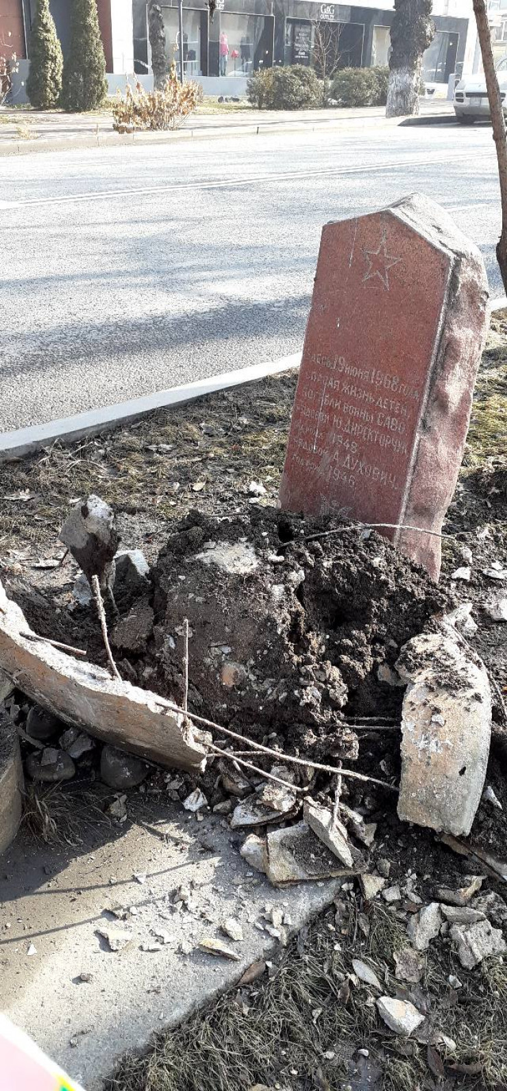 Также на кадрах видно, что памятник полностью снесен и лежит на земле.