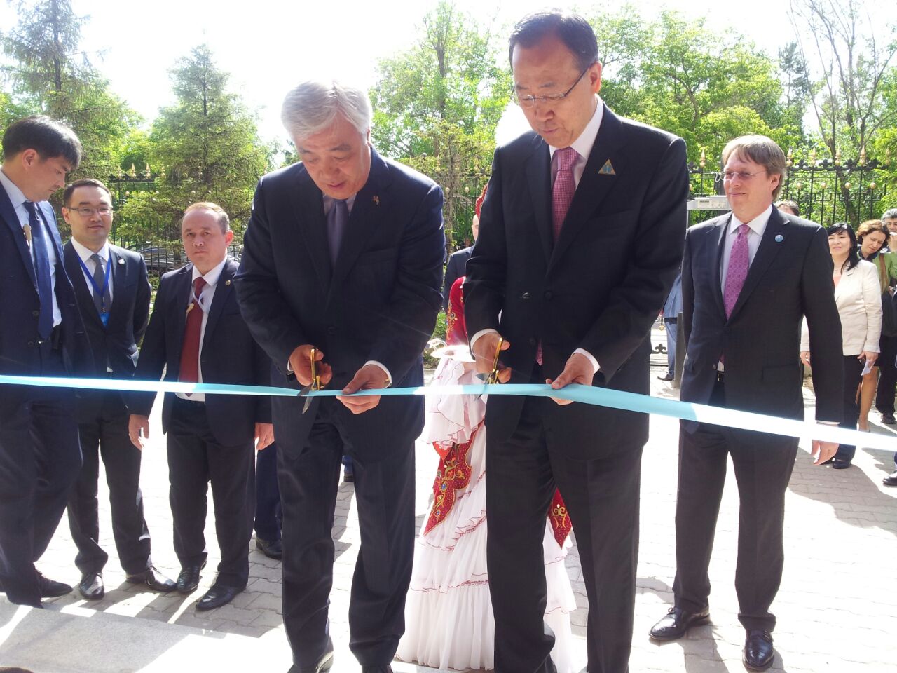 Пан Ги Мун открыл в Астане новое здание представительства ООН в Казахстане, сообщает корреспондент Tengrinews.kz. В церемонии открытия также участвовал глава МИД Ерлан Идрисов.
