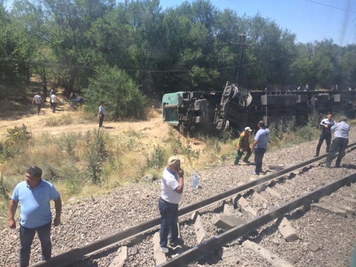 Напомним, ЧП произошло около 13.25 в районе станции Шу в Жамбылской области с поездом сообщением Астана - Алматы № 9 "Байтерек". По уточненной информации КЧС МВД, сошли с рельсов шесть вагонов, три из которых легли на бок. Пострадало четыре человека, один из которых погиб. Личности устанавливаются. В ДЧС Жамбылской области открыта горячая линия. Номера телефонов: (7262) 51-35-75, 51-41-67. В Министерстве по инвестициям и развитию назвали предварительную причину схода вагонов.