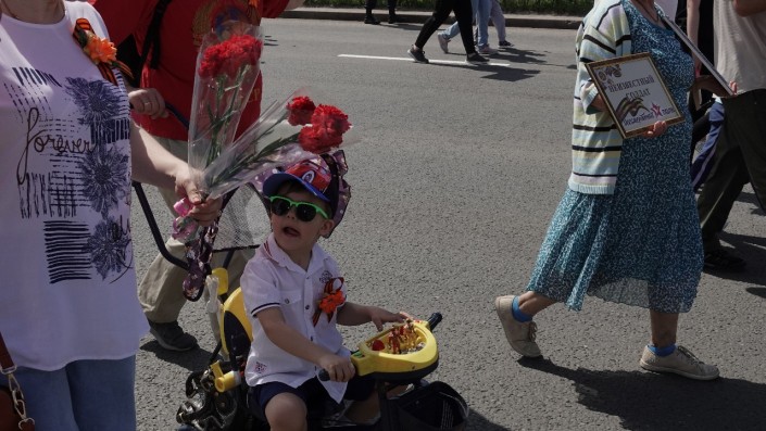 Детей в некоторых колоннах было почти столько же, сколько и взрослых. Молодое поколение с гордостью на лице несло портреты своих родных и близких людей.