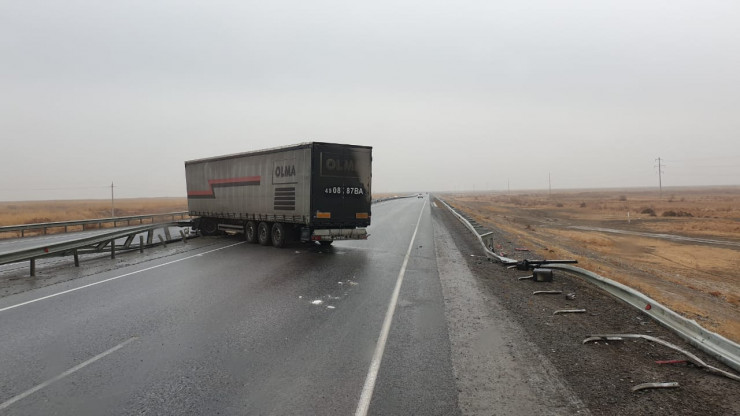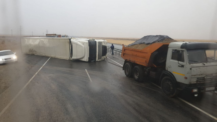 Перевернутая фура перекрыла трассу Кызылорда - Шымкент