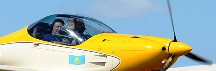 Первым грунтовую самолетную полосу протестировал аким Павлодарской области Булат Бакауов, прибывший в качестве пассажира на борту двухместного самолета FK14 Polaris.