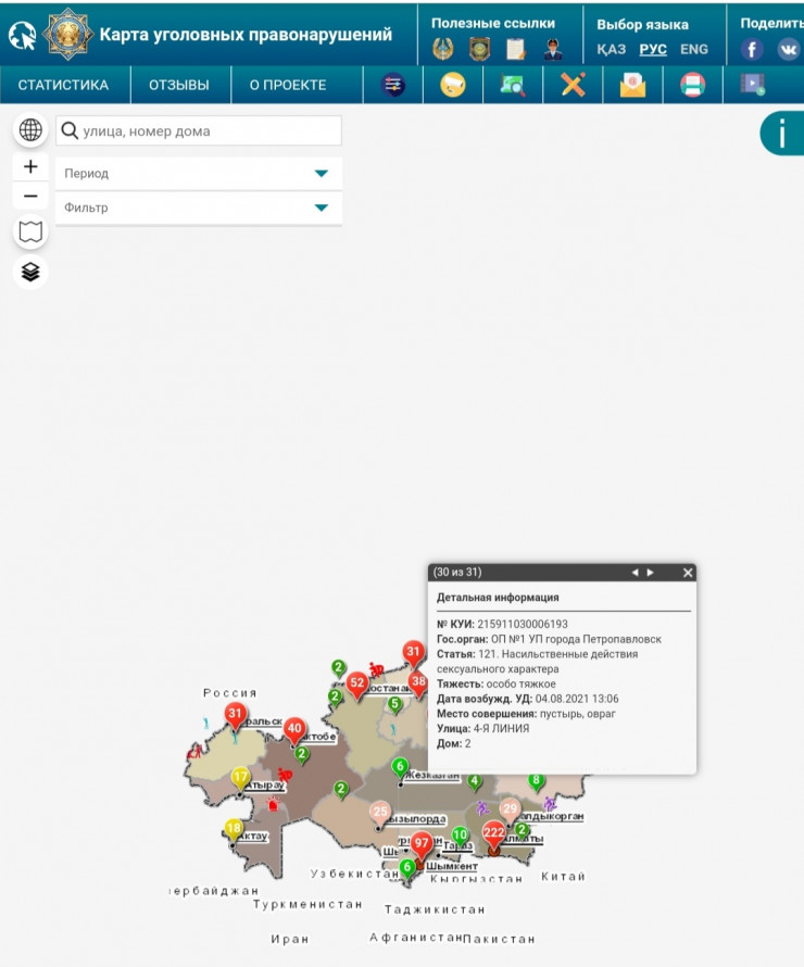 Оба преступления внесены в Карту уголовных правонарушений. Там отмечено,  что одно из нападений произошло на пустыре близ тубдиспансера, второе - на улице имени Тауфика Мухамед-Рахимова.