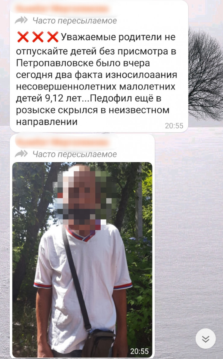 "Берегите детей, потому что у нас сегодня  возле тубдиспансера девочку 13 лет изнасиловали за остановкой. Так что берегите, чтобы дети не бегали без присмотра, потому что в городе объявился маньяк", - говорится в одном из пересылаемых сообщений.