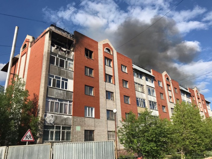 По словам очевидца Максима Сахнова, пожар из квартиры на пятом этаже перекинулся на крышу дома. На месте, по его словам, работали четыре единицы техники противопожарной службы города.