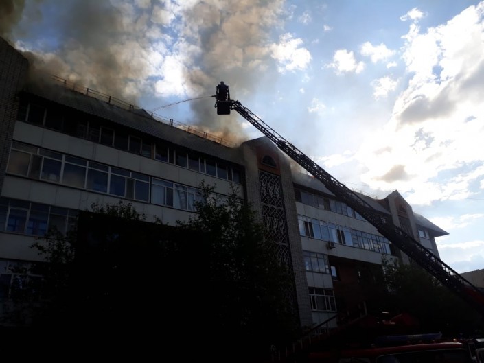 По данным пресс-службы КЧС МВД, вызов поступил в 17.52. Площадь пожара устанавливается. На месте работает 15 единиц техники и 55 человек личного состава ДЧС, проводится эвакуация. Пострадавших нет.
