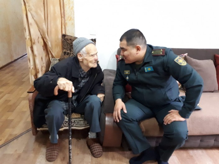 Также в этот день военнослужащие навестили писателя, президента Международного фронтового клуба имени газеты "Казахстанская правда", ветерана Великой Отечественной войны, гвардии полковника и почетного гражданина Алматы и Алматинской области Леонида Гирша.