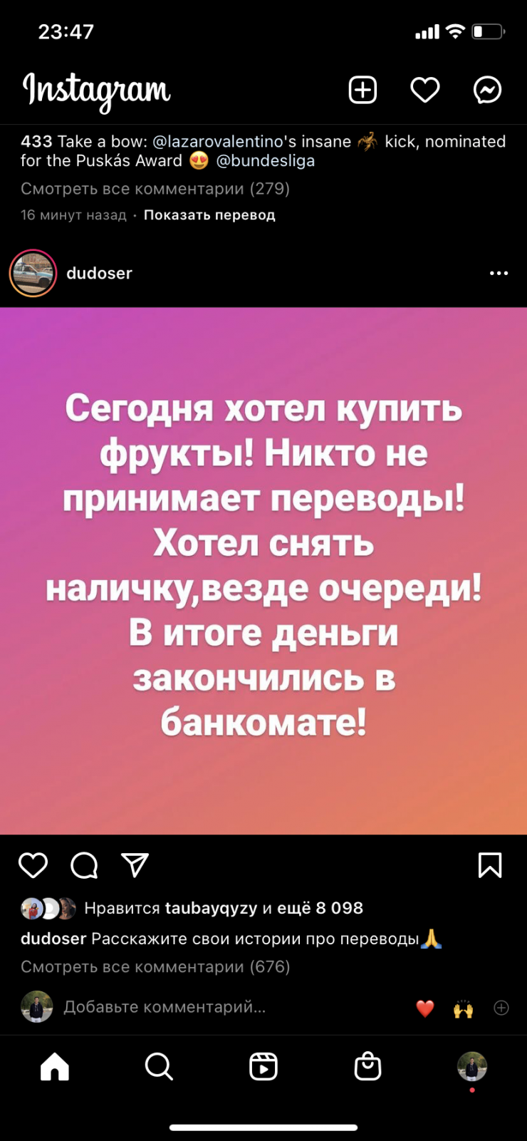 В другом магазине у дома, продавец сказала, что они принимают деньги через переводы последний день. По ее словам это может серьезно ударить по ним из-за конкурентов.
