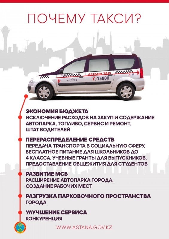 Акимат Астаны пошел на такие меры из-за того, что часть городского автопарка постоянно не используется, а деньги на его содержание приходится выделять. На самом деле экономия бюджета происходит в нескольких направлениях. В частности, теперь не будет необходимости закупать и обновлять парк, не придется платить за сервис и ремонт, не нужно будет покупать топливо, а также содержать в штате водителей.
