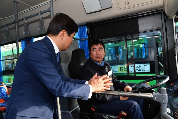 Почему закупили новые автобусы не на газе, а на дизеле - объяснил Байбек Фото пресс-службы акима Алматы.