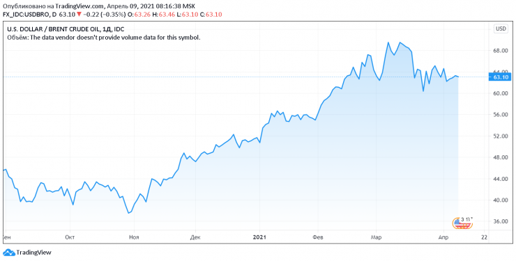 На утро 9 апреля нефть марки Brent торгуется на мировых рынках по 63,1 доллара за баррель.