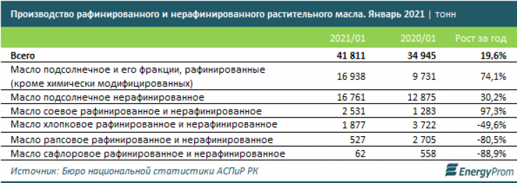 В то же время, по данным Бюро национальной статистики, в январе компании успели произвести 41,8 тысячи тонн растительного масла - сразу на 19,6 процента больше, чем годом ранее.