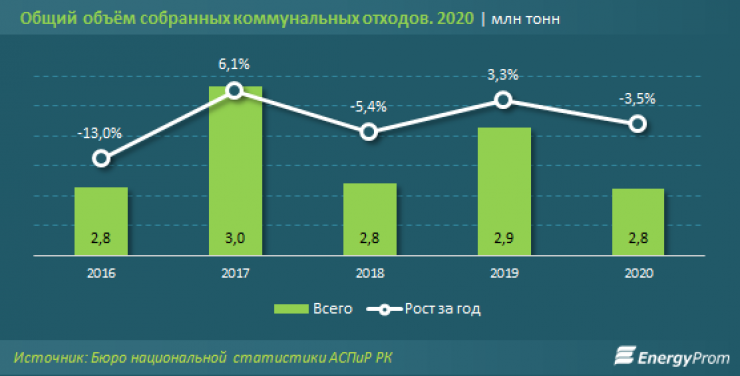 Стоит отметить, что в 2020 году в стране насчитывалось 625 предприятий по сбору и вывозу коммунальных отходов. В прошлом году эти предприятия собрали 2,8 миллиона тонн коммунальных отходов.