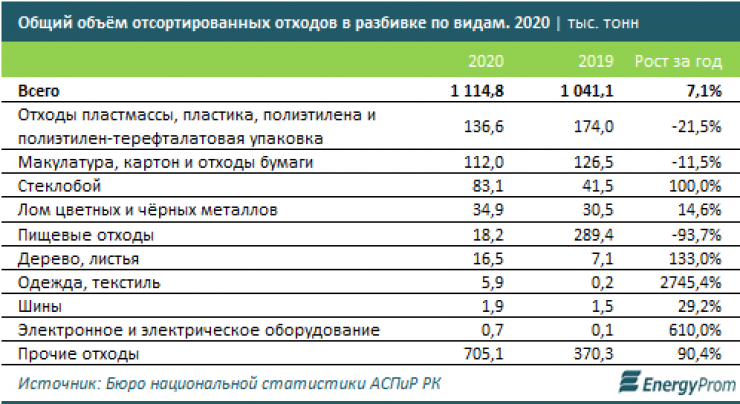 "Из этого объема 1,1 миллиона тонн отходов отсортировали, что на 7,1 процента больше, чем в 2019 году. Лишь 13,2 тысячи тонн отходов было переработано для получения вторичного сырья. Наибольший объем сортировки приходится на отходы, состоящие из пластмассы, пластика, полиэтилена и полиэтилен-терефталатовой упаковки. Помимо них, в топ-3 вошли макулатура, картон и отходы бумаги, а также стеклобой", - пишут аналитики.