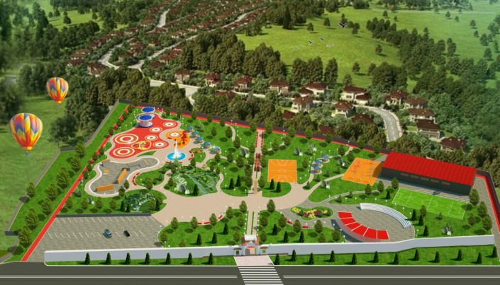 Территория парка - 4,3 гектара, на трех гектарах растут 850 деревьев разных пород и различные растения. В сквере также расположены детские площадки, зоны для игры в баскетбол, футбол, шахматы. Кроме этого, есть место для катаний на скейтборде, беговая дорожка, сцены, трибуны, фонтан. Возле парка есть парковка на 100 машиномест. Вход бесплатный. Alibi City Park был построен за счет собственных средств частной компании.