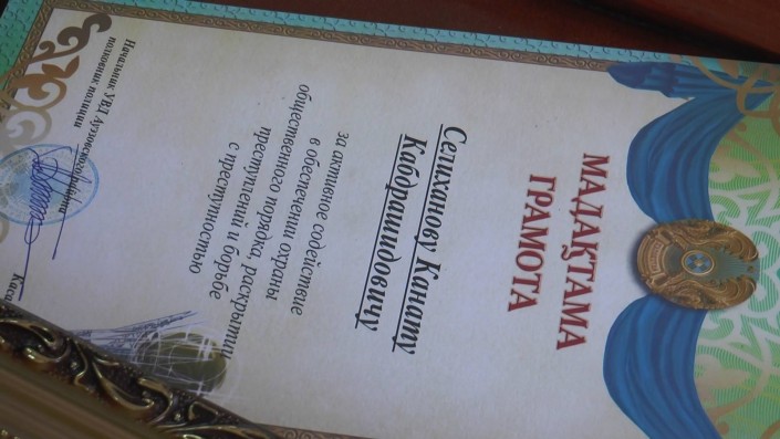 "Сегодня мы решили особо подчеркнуть роль Каната Селиханова в обеспечении правопорядка в городе. Отважный мужчина удостоен поощрения с нашей стороны в виде грамоты, именной картины и скромной денежной премии. И это все не ради "красного словца", а с целью максимального привлечения граждан к исполнению своего гражданского долга. Ведь не зря в свое время Глава государства призывал общество не проходить мимо правонарушений и сообща бороться с такими проявлениями. И поступок Каната Селиханова - яркое подтверждение успешной и эффективной реализации этого принципа", - подчеркнул начальник районного УВД Бахыт Касабеков.