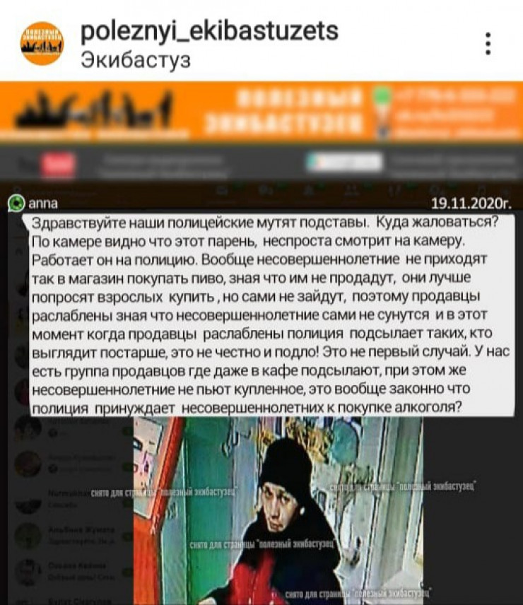 "Он работает на полицию. Несовершеннолетние не приходят так в магазин покупать пиво, они знают, что им не продадут. Они лучше попросят взрослых купить, но сами не зайдут, поэтому продавцы расслаблены, знают, что несовершеннолетние сами не сунутся. И в этот момент, когда продавцы расслаблены, полиция подсылает тех, кто выглядит постарше, это нечестно и подло. Это не первый случай. … Даже в кафе подсылают, при этом несовершеннолетние не пьют купленное. Это вообще законно, что полиция принуждает несовершеннолетних к покупке алкоголя?" – возмущается автор поста.