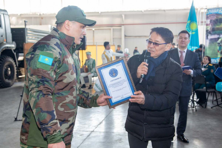 Офицера поздравили министр внутренних дел Марат Ахметжанов и министр обороны Руслан Жаксылыков. Также ему вручили специальный сертификат от имени Казахстанской книги рекордов.