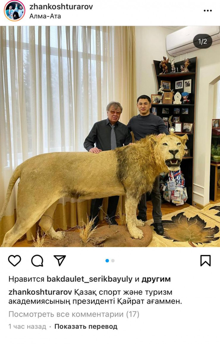Полиция изучает фото президента академии туризма со шкурами снежных барсов Фото:instagram.com/zhankoshturarov
