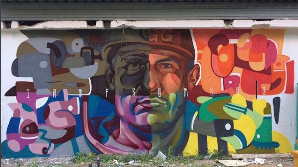 Портрет-граффити Динмухамеда Кунаева украсил стену в Алматы Фото ©РИА Новости Фото instagram.com/tanai_tigrohaud