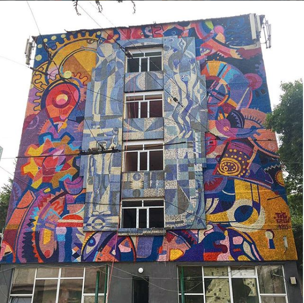 Стрит-арт-художники из объединения Tigrohaud crew украсили одну из стен в Алматы портретом Динмухамеда Кунаева, передает корреспондент Tengrinews.kz.