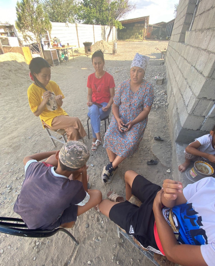 Дильназ Данаева вместе с родственницами и детьми в ожидании мужа