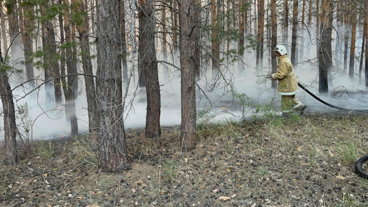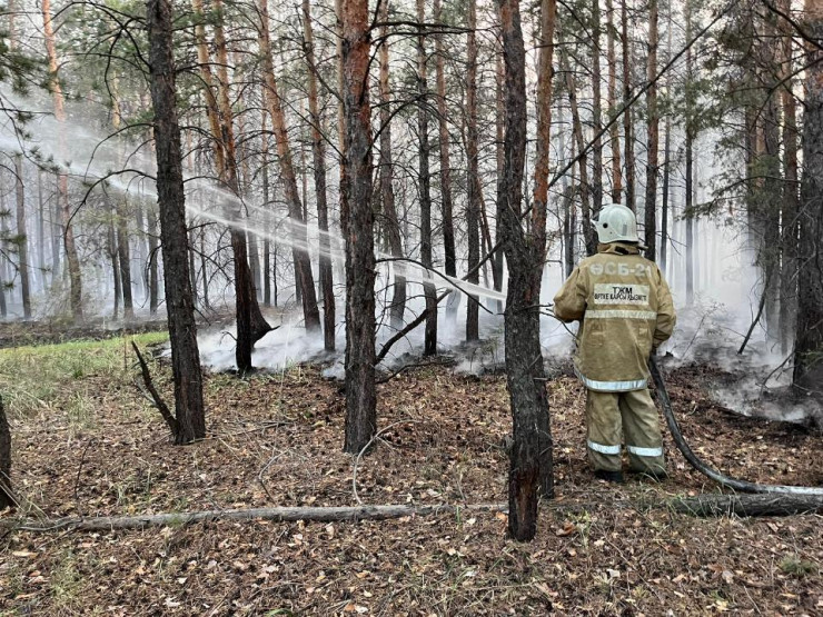 "На данный момент производится тушение на трех участках с использованием авиационной и автомобильной техники. Также производится тушение отдельных очагов с помощью ранцев и шансовых инструментов. В работе задействованы 126 военнослужащих МЧС и МО", - отметили в пресс-службе министерства.