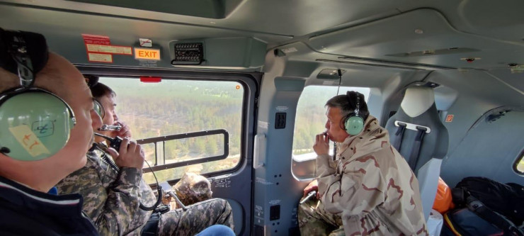 По данным ведомства, для борьбы с природной стихией привлекли пять воздушных судов МЧС: три - Министерства обороны, еще два - Министерства экологии и природных ресурсов. Из них два вертолета производят аэровизуальный облет территории.