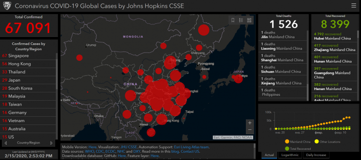 По последним данным, в мире число зараженных коронавирусом превысило 67 тысяч человек. 1526 человек скончались - большая часть из них граждане Китая, по одному смертельному случаю зафиксировано в Японии и на Филиппинах. Излечились от COVID-19 почти 8,4 тысячи человек.