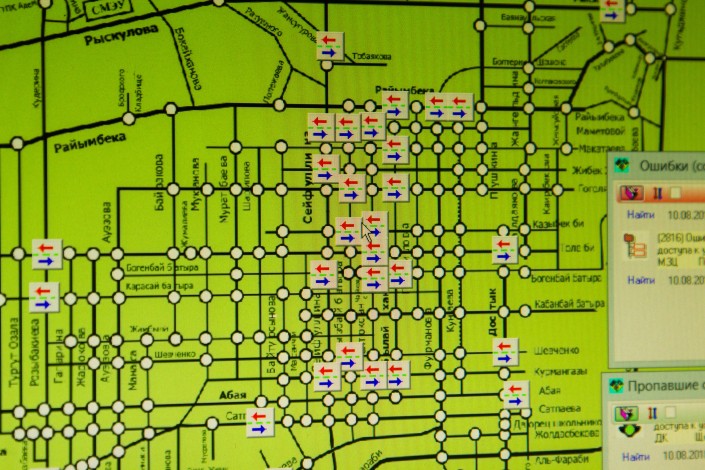 Центр управления перекрестками находится в здании ГорГАИ, которое находится на Байтурсынова - Тимирязева. Это объект режимный, сюда могут попасть только сотрудники.