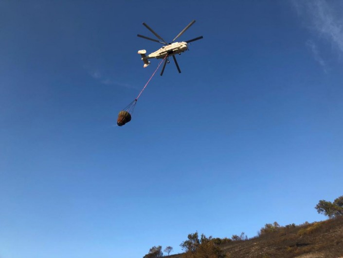 "Пожар происходит на широкой площади, поэтому было принято решение на некоторых участках тушить вертолетом", - пояснил он.