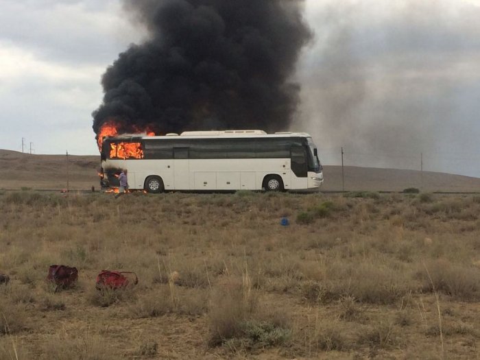 Спустя несколько месяцев пассажирский автобус сгорел на трассе Актау - Каражанбас в Мангистауской области.