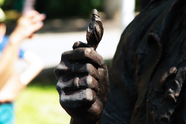 "Виктор Цой такой одичалый немножко приехал из Алма-Аты, взъерошенный, в образе, в общем. В фильме "Игла" он играл себя, ведь он не был актером, поэтому и в жизни, безусловно, был похож на Моро. Скульптура получилась очень хорошей", - поделился мнением всегда немногословный Юрий Каспарян, добавив, что в Алма-Ате и его одного, и вместе с Виктором Цоем всегда очень тепло встречали.