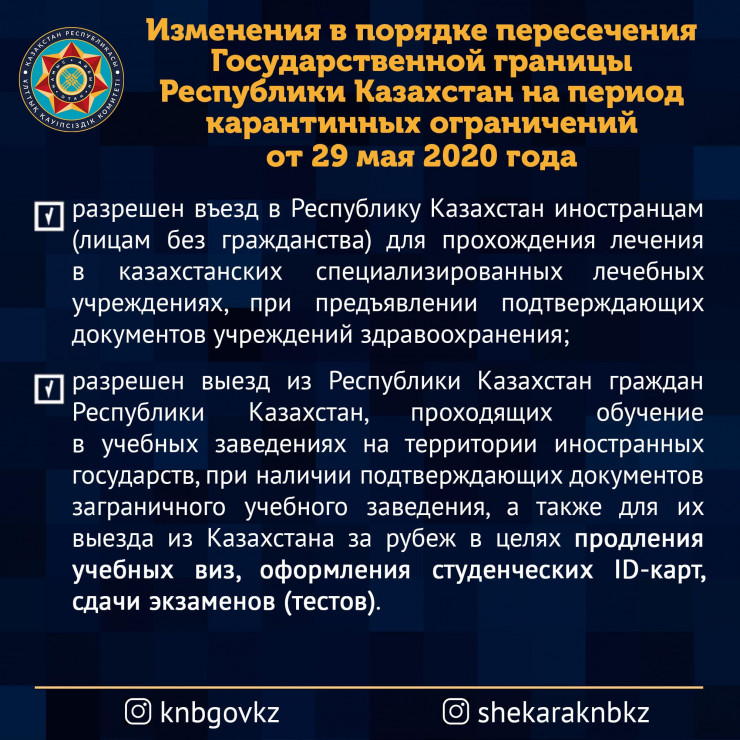 4. Разрешен выезд из Казахстана студентам иностранных учебных заведений для продления студенческих виз, сдачи экзаменов, оформления ID-карт.