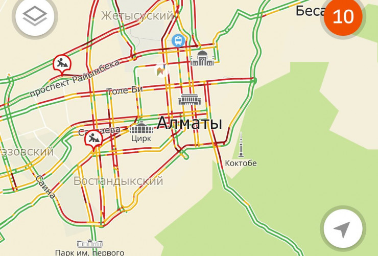 По данным картографических систем, пробки в Астане и Алматы по 9 и 10 баллов.