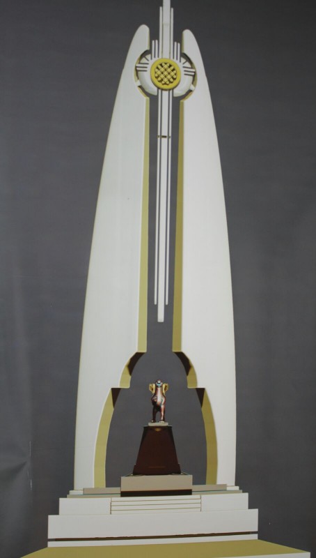 Скульптура в виде домбры. В центре расположен знак - символ орла, поддерживающий шанырак.