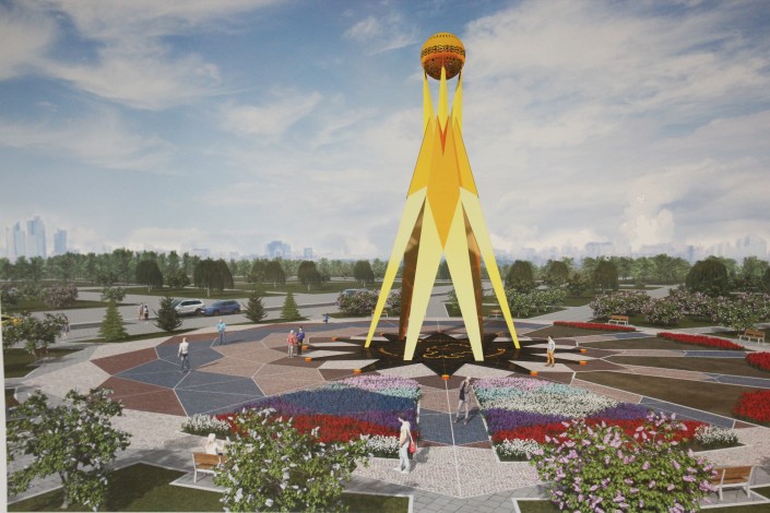 Архитектурная и скульптурная композиция "Знак Астаны" посвящена 25-летию Независимости Республики Казахстан. Она должна быть закончена и открыта 16 декабря следующего года.