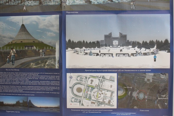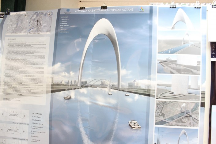 В НИПИ "Астанагенплан" выставлены все работы участников конкурса. Для объективного решения судей авторство работ не раскрывается, каждой конкурсной работе присвоен индивидуальный номер. Мы выбрали лишь малую часть работ, чтобы у читателя могло сложиться примерное впечатление о возможном новом монументе.