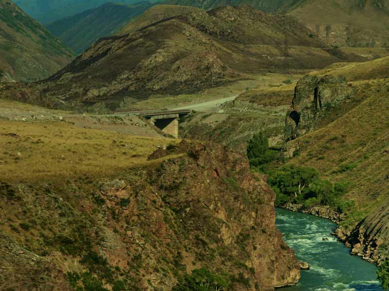 Кыргызстан представлен тремя объектами на данном участке Шелкового пути: городище Ак-Бешим (город Суяб), городище Бурана (город Баласагун) и городище Красная Речка (город Невакет). На фото представлен участок возле реки Чу.