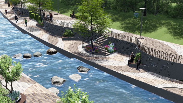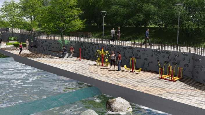 На набережной этой реки архитекторы порекомендовали выполнить благоустройство в едином стиле, чередовать активные и тихие зоны. Также нужно оставить существующее озеленение и сократить площадь твердых покрытий.