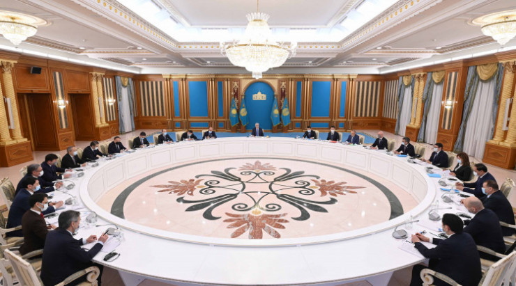 Мероприятие началось с обсуждения необходимого пакета мер для нивелирования негативного влияния геополитической ситуации на Казахстан. По этому вопросу с докладами выступили премьер-министр Алихан Смаилов, председатель Национального банка Галымжан Пирматов, внештатный советник Президента по вопросам экономического развития, заместитель председателя Высшего совета по реформам сэр Сума Чакрабарти, а также члены правительства.