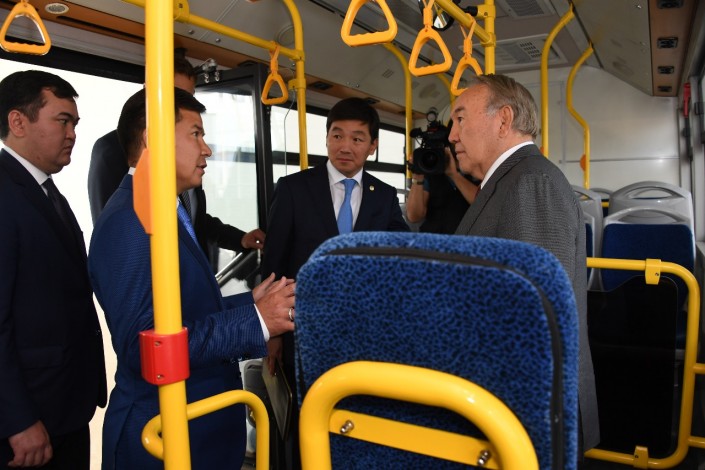В ходе посещения ТОО "Falcon Eurobus" Президент заслушал доклад о деятельности завода и ознакомился с технологическим процессом производства электроавтобусов третьего поколения.