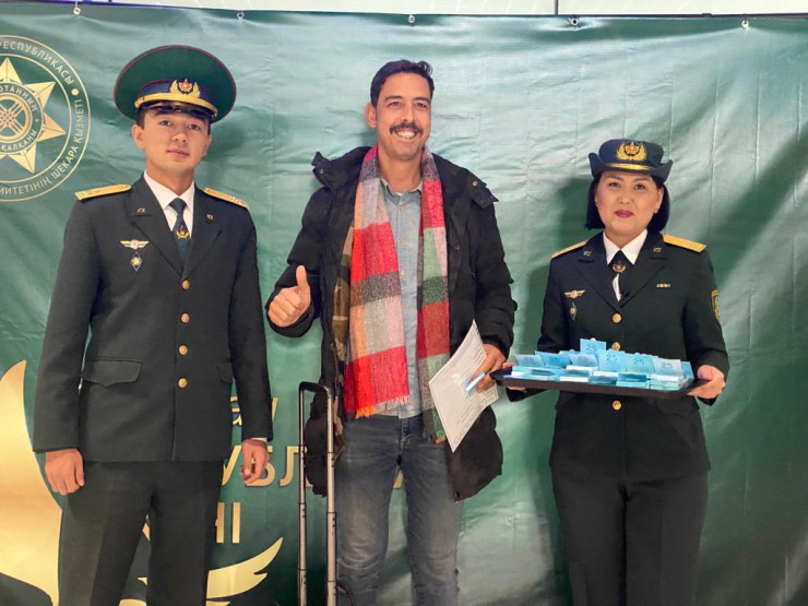 Прилетающих в Казахстан пассажиров встречают шоколадом Кадр из видео Instagram/shekaraknbkz